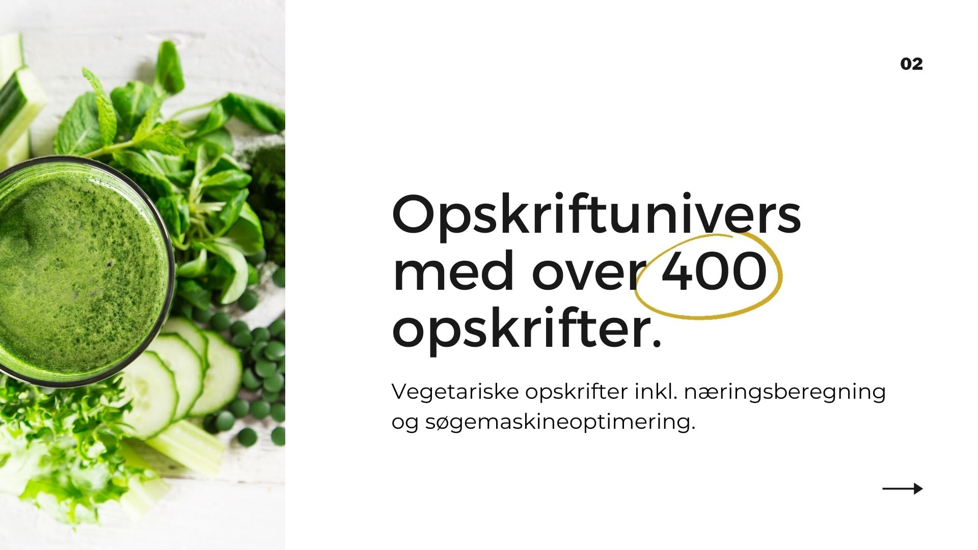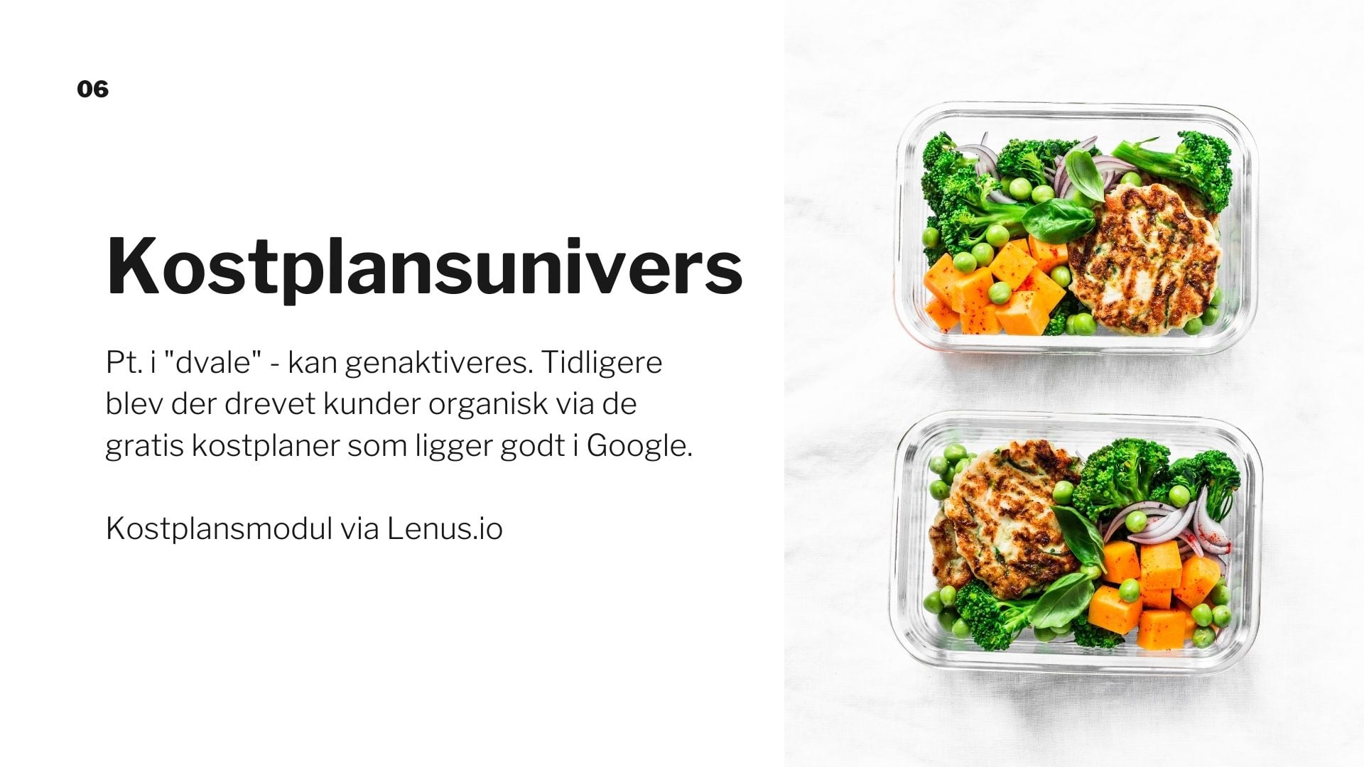- 140.000 visninger per år på en gratis kostplan, der kan bruges som funnel til de betalte kostplaner eller andre relevante produkter.