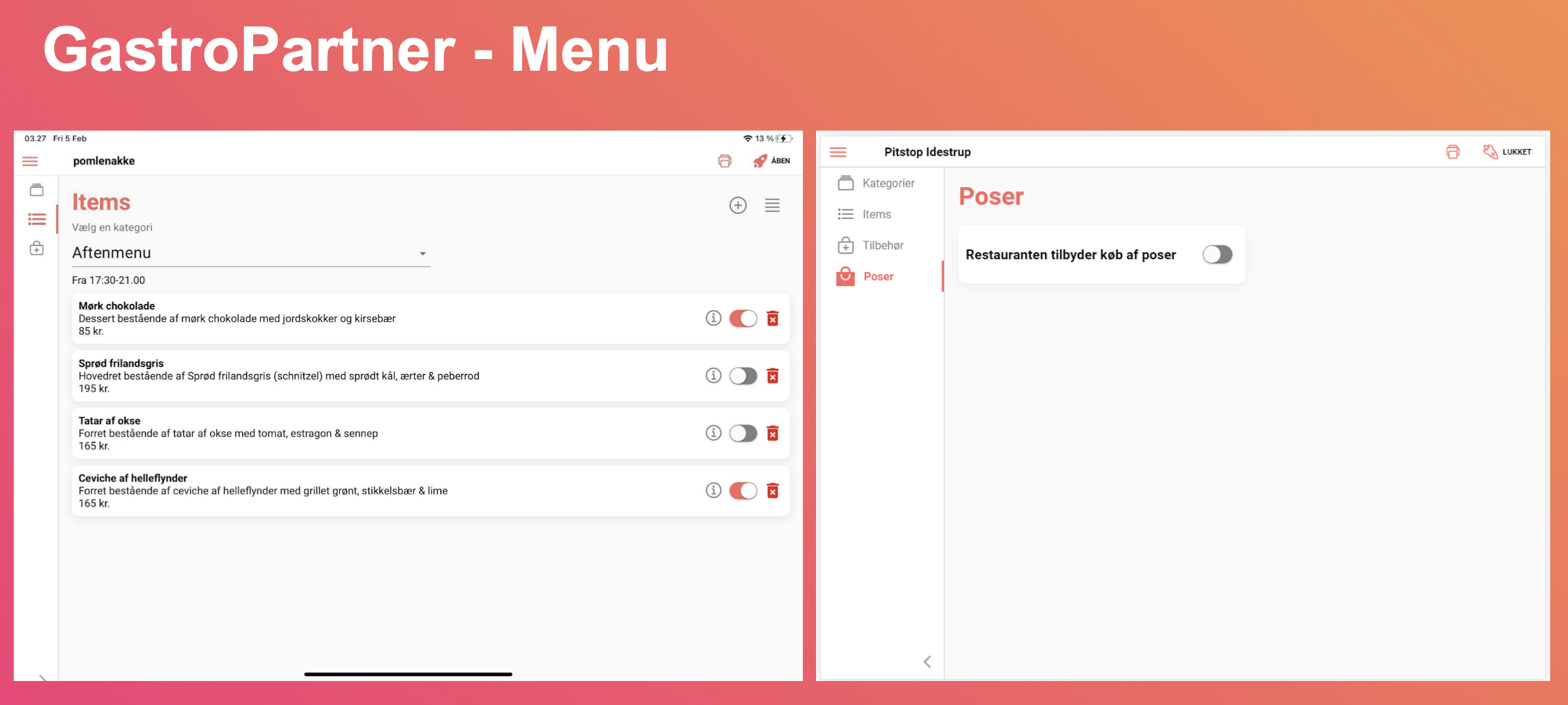 Gennemtestet mad bestillingsplatform til restauranter, cafeer og take-away steder.