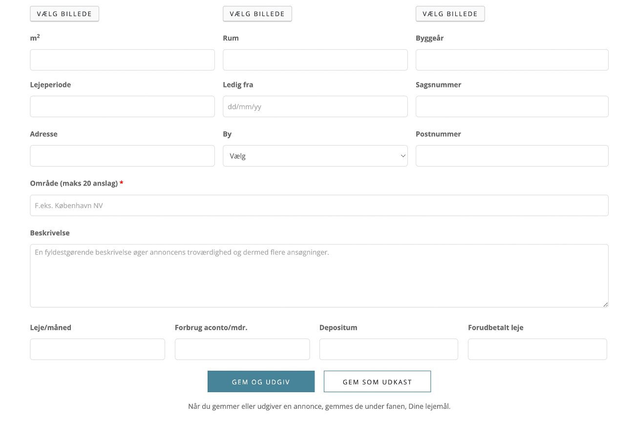 Alle udlejere, private udlejere, ejendomsinvestorer, ejendomsmæglere og administratorer kan selv lægge deres ledige lejeboliger på boligportalen.
