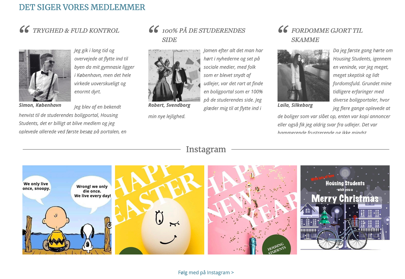 Til boligportalen Housing Students, er der tilknyttet en Instagram-, facebook- og Linkedin profil.