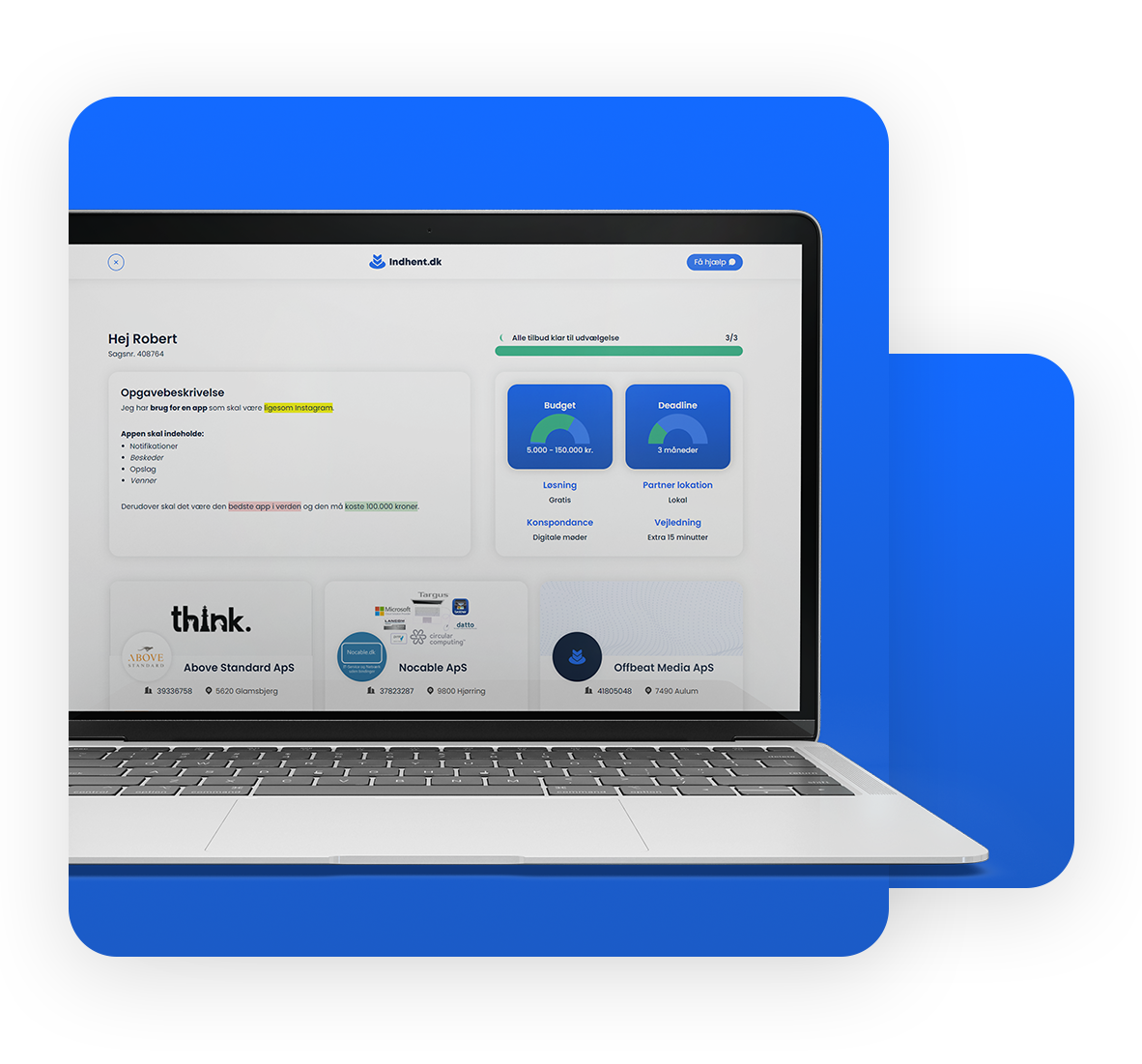Indhent.dk finder tre tilbud og giver konsulentrådgivning i forbindelse med udvikling af din hjemmeside, webshop eller app.