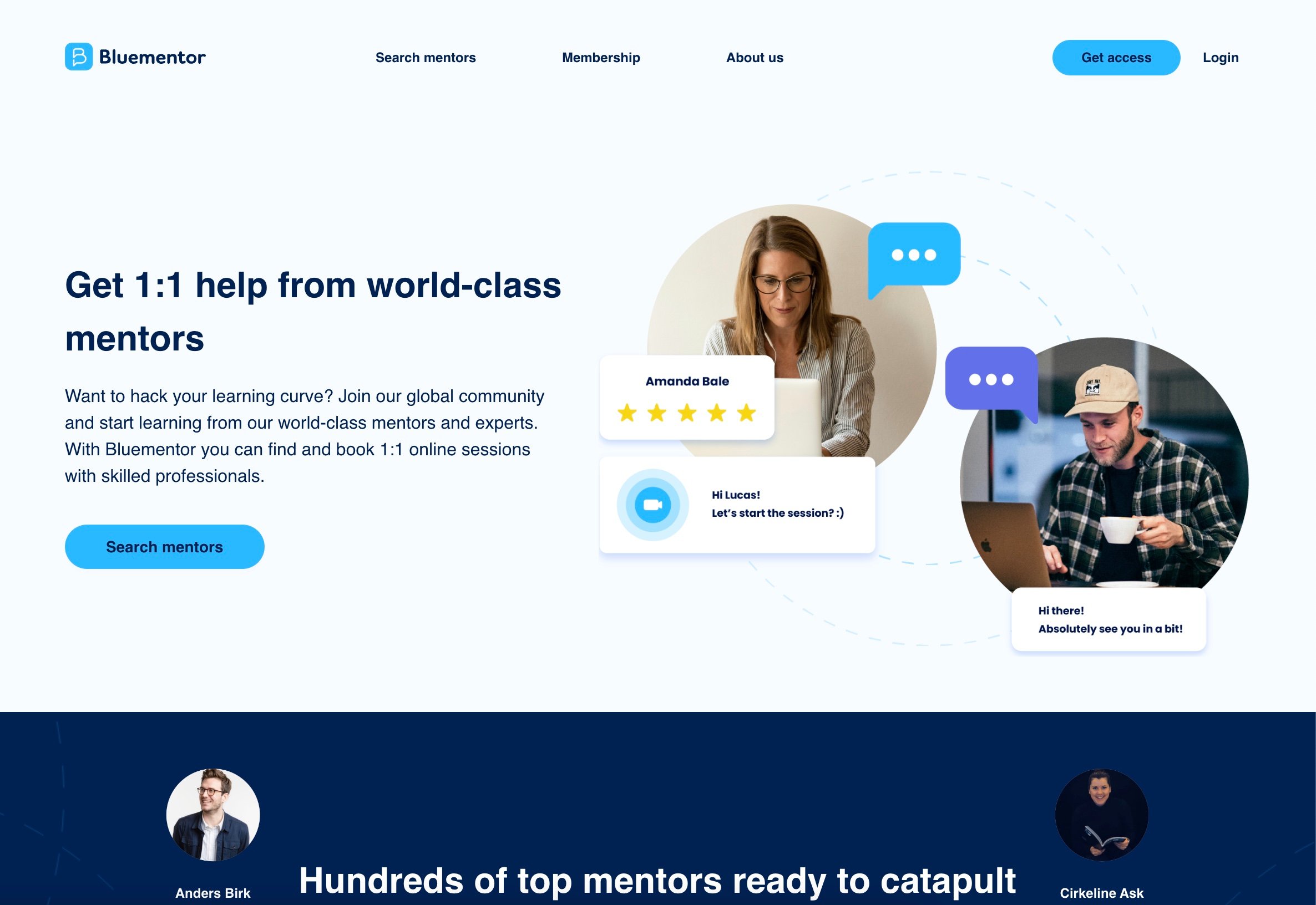 Mentees kan så browse blandt alle mentorer baseret på en lang række filtre såsom skills, ekspertise, industri, ratings og meget mere.