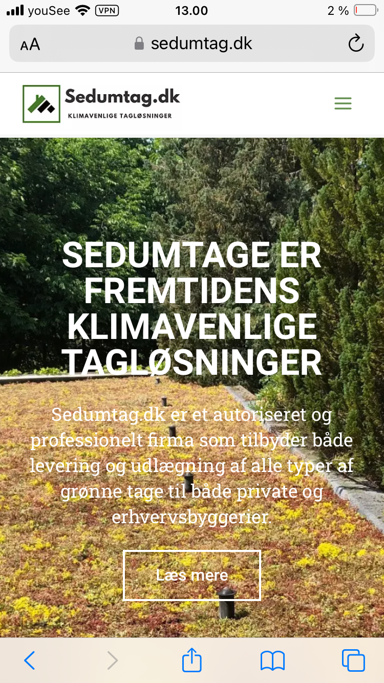 Et moderne og klimavenligt Sedumtag er fremtidens klimavenlige tagløsning. Udviklingen indenfor grønne tage har de seneste år budt på nye løsninger, som gør det muligt at udnytte taget på en helt anden måde end tidligere.