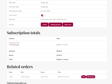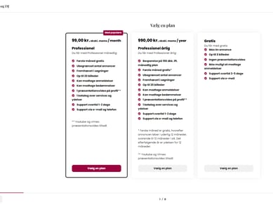 - Kr. ca 160 for drift af website og hosting pr.måned.