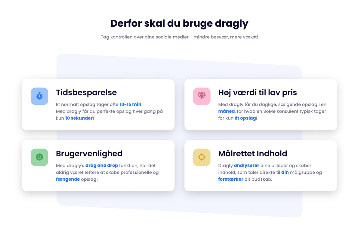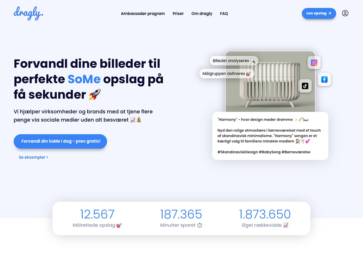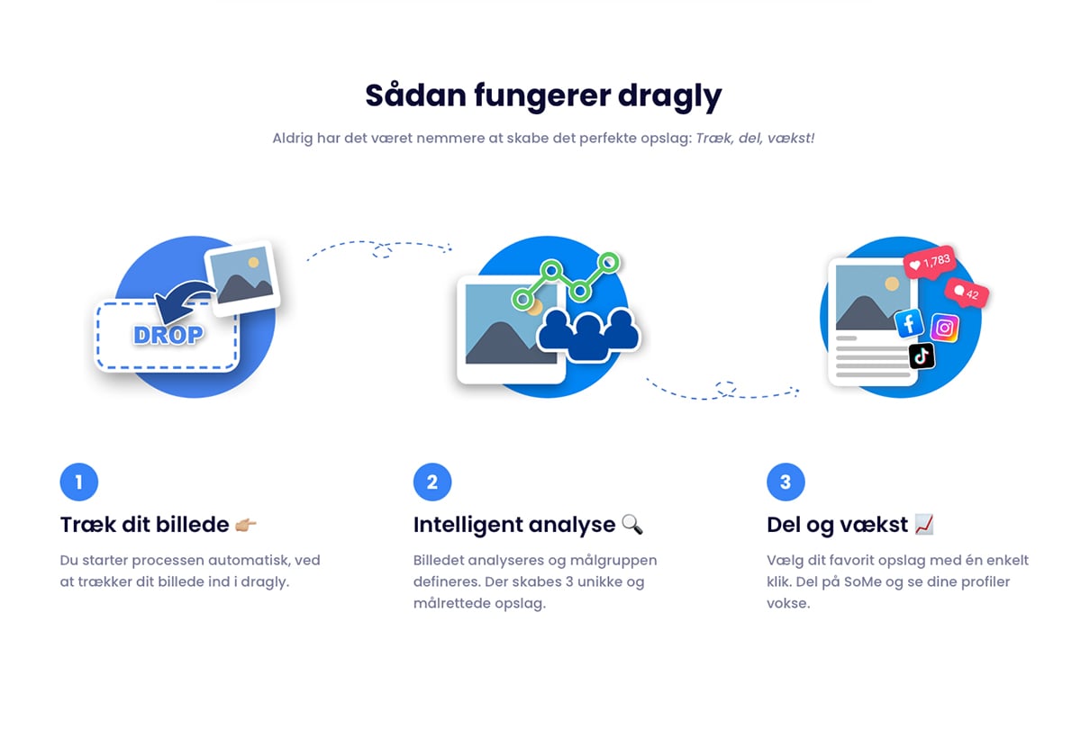 Dragly transformerer ethvert billede til et perfekt SoMe opslag med hooks, storytelling og alt det der skal være i et perfekt sælgende opslag.