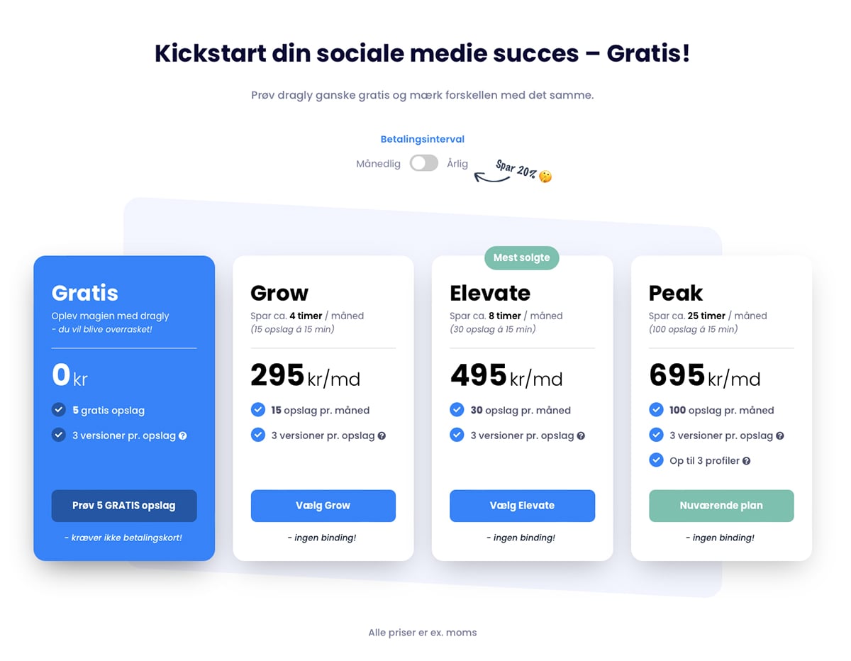 - og med Dragly får de DAGLIGE opslag hele måneden for hvad en normal SoMe konsulent typisk tager for kun ET opslag! 😉