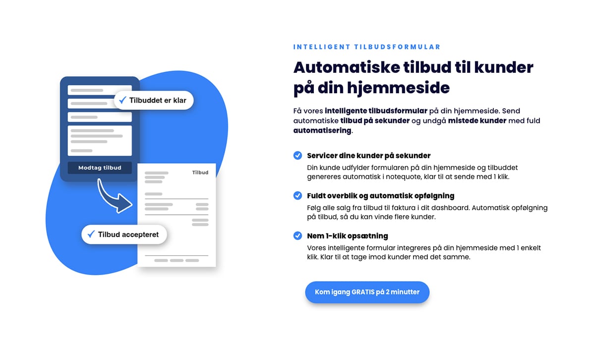 - Intelligent tilbudsformular til integration på kundens egen hjemmeside
