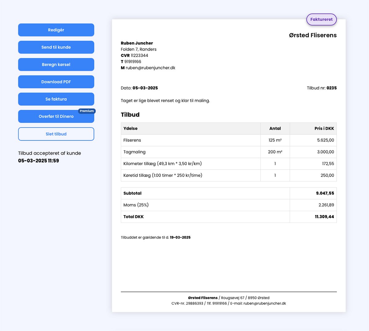 - Send, rediger eller gem tilbuddet med ét klik