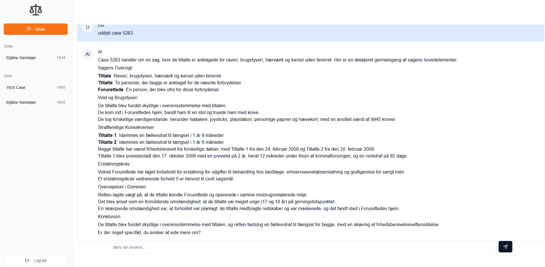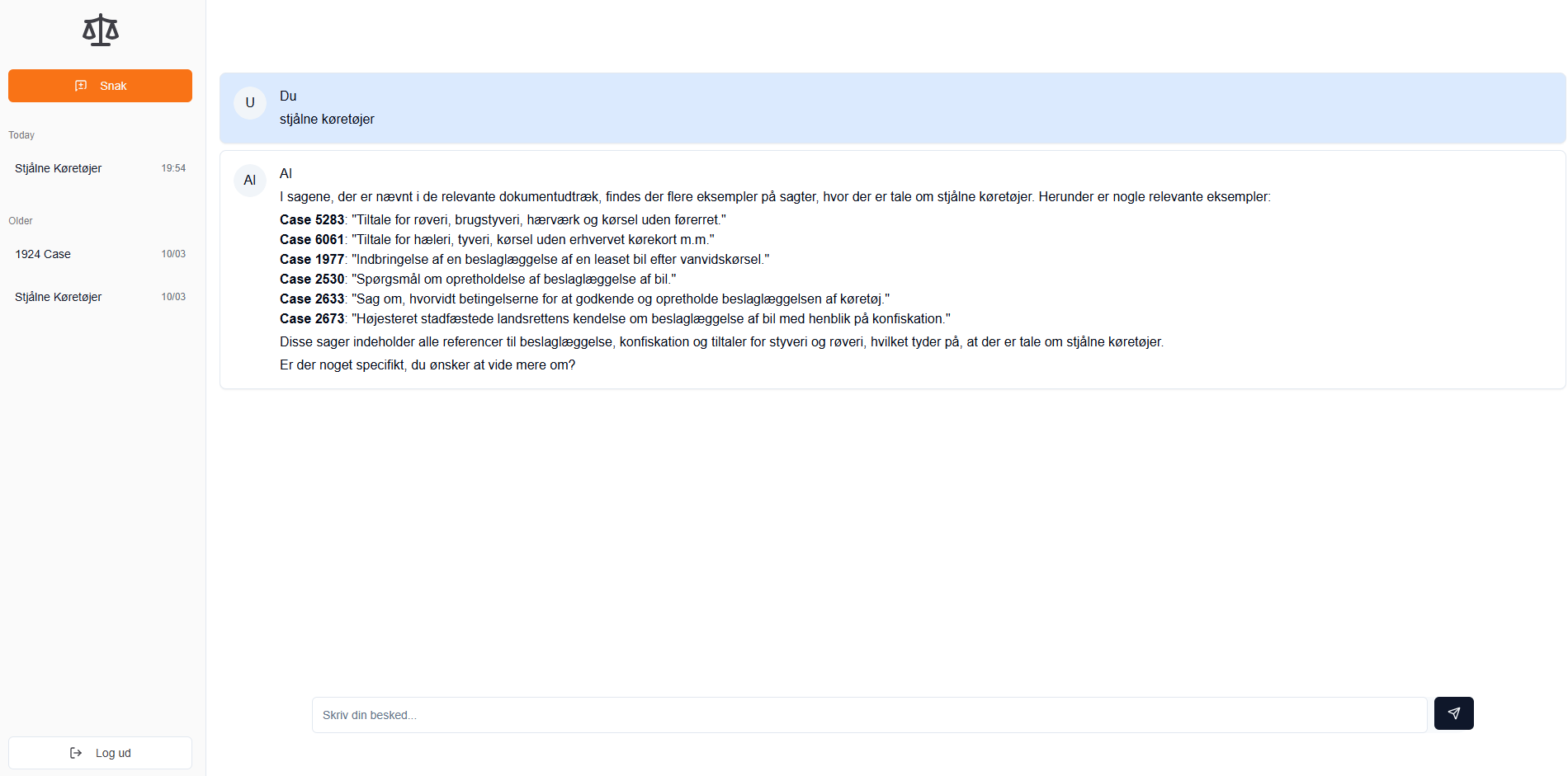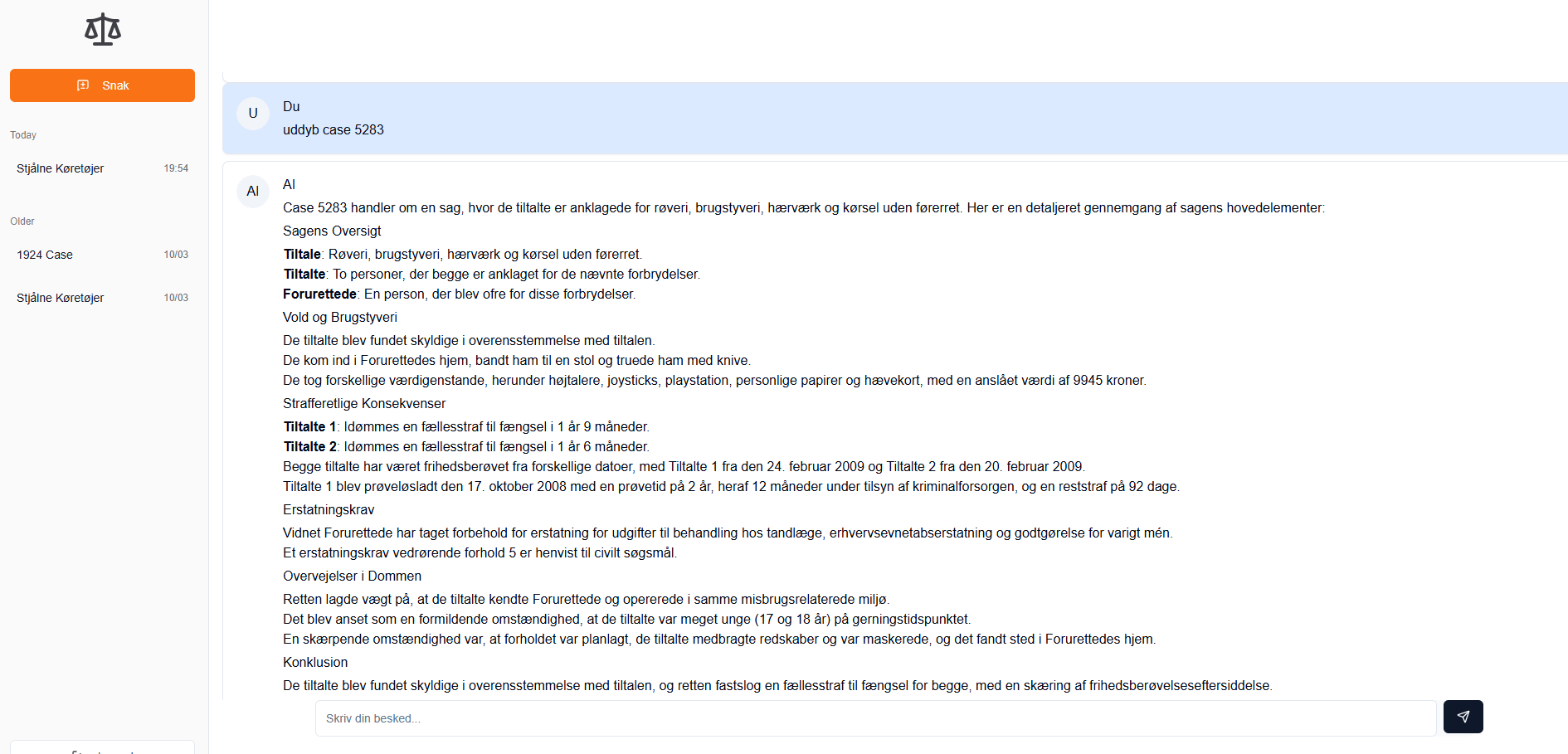 Vi har investeret 1.000 timers udvikling i at bygge en fuldt dokumenteret og skalerbar platform fra bunden. Det har krævet en enorm indsats at strukturere retsdata, udvikle algoritmer og sikre en brugervenlig oplevelse. Men resultatet er en færdig MVP, der allerede indeholder 2.000 afgørelser og kan udvides til 500.000.
