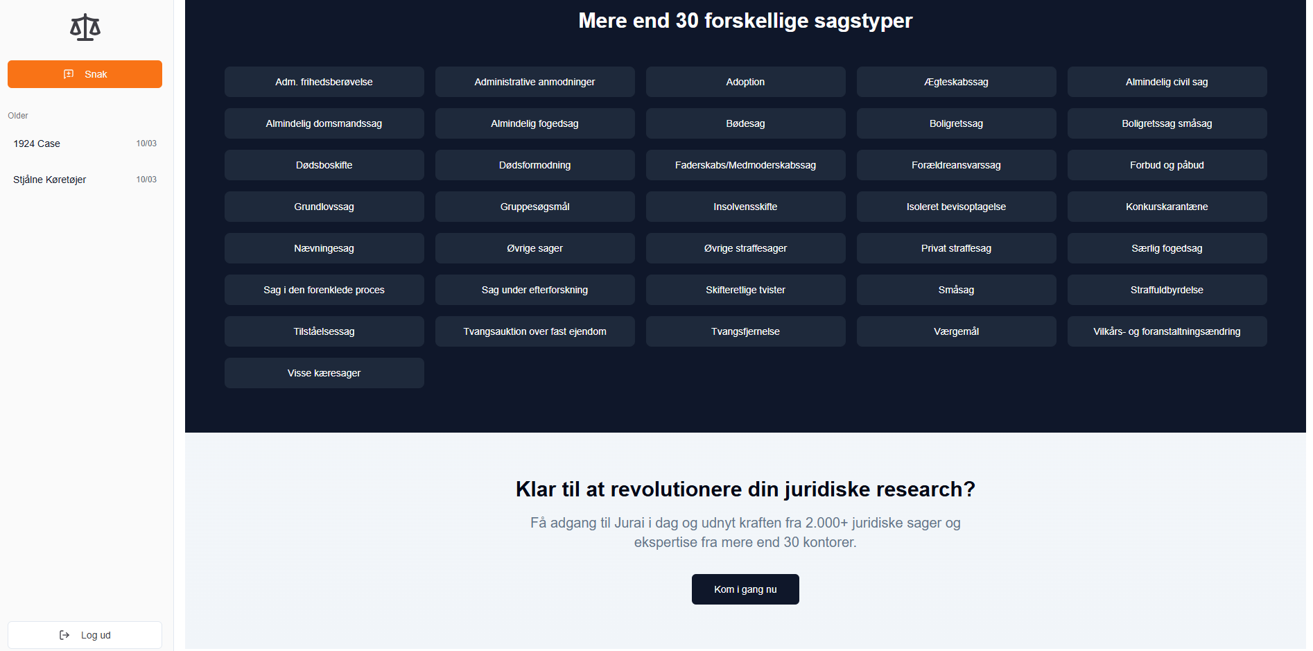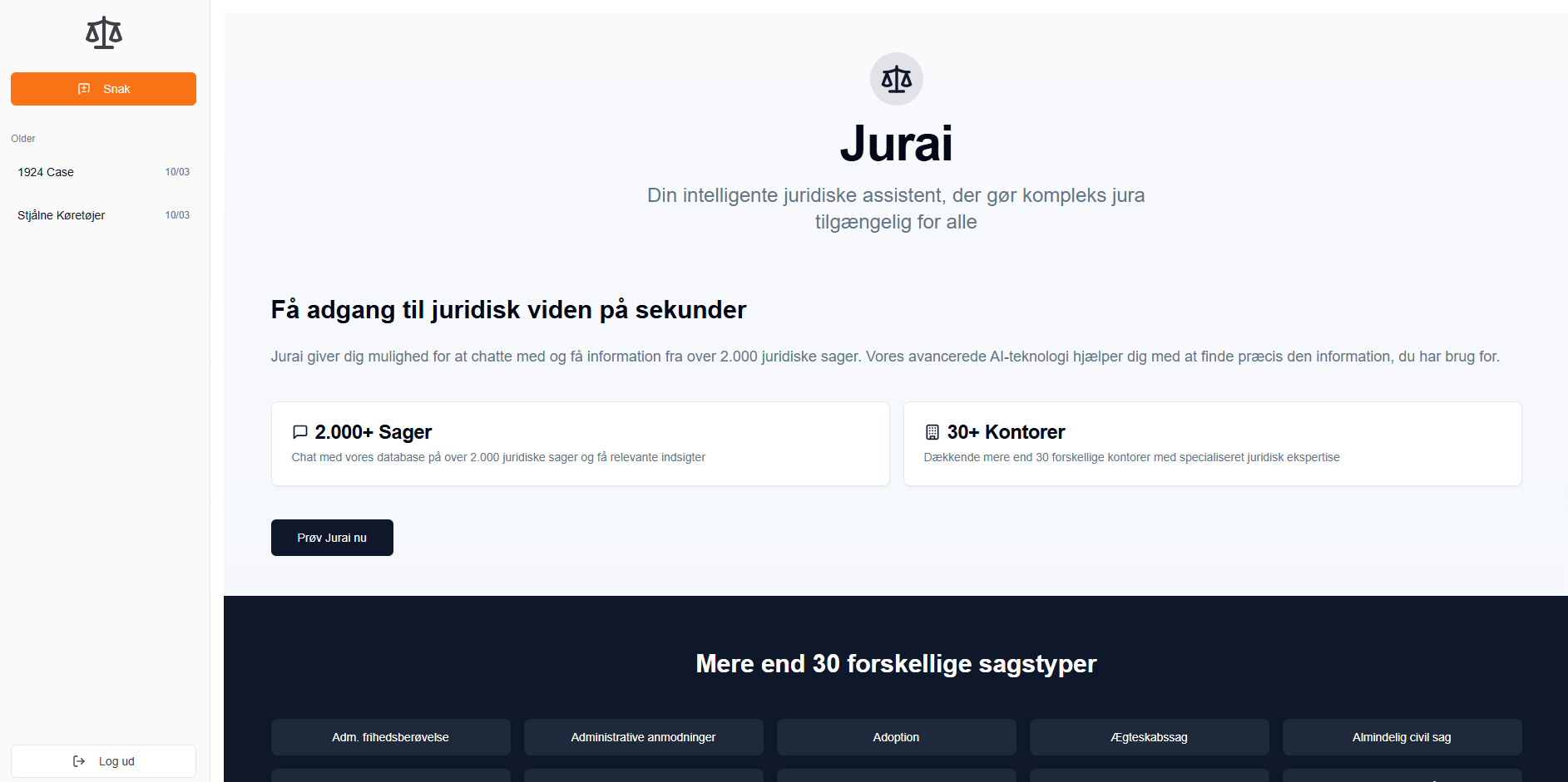 Jurai indeholder allerede 2.000 afgørelser og kan udvides til 500.000 sager, hvilket gør den til en skalerbar løsning for advokatfirmaer, virksomheder og startups, der ønsker at arbejde smartere med juridisk data.