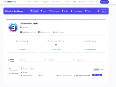 Partnerdashboard Fuldt funktionelt dashboard med leadfilter, kreditkøb, tilbudsstatus mv.
