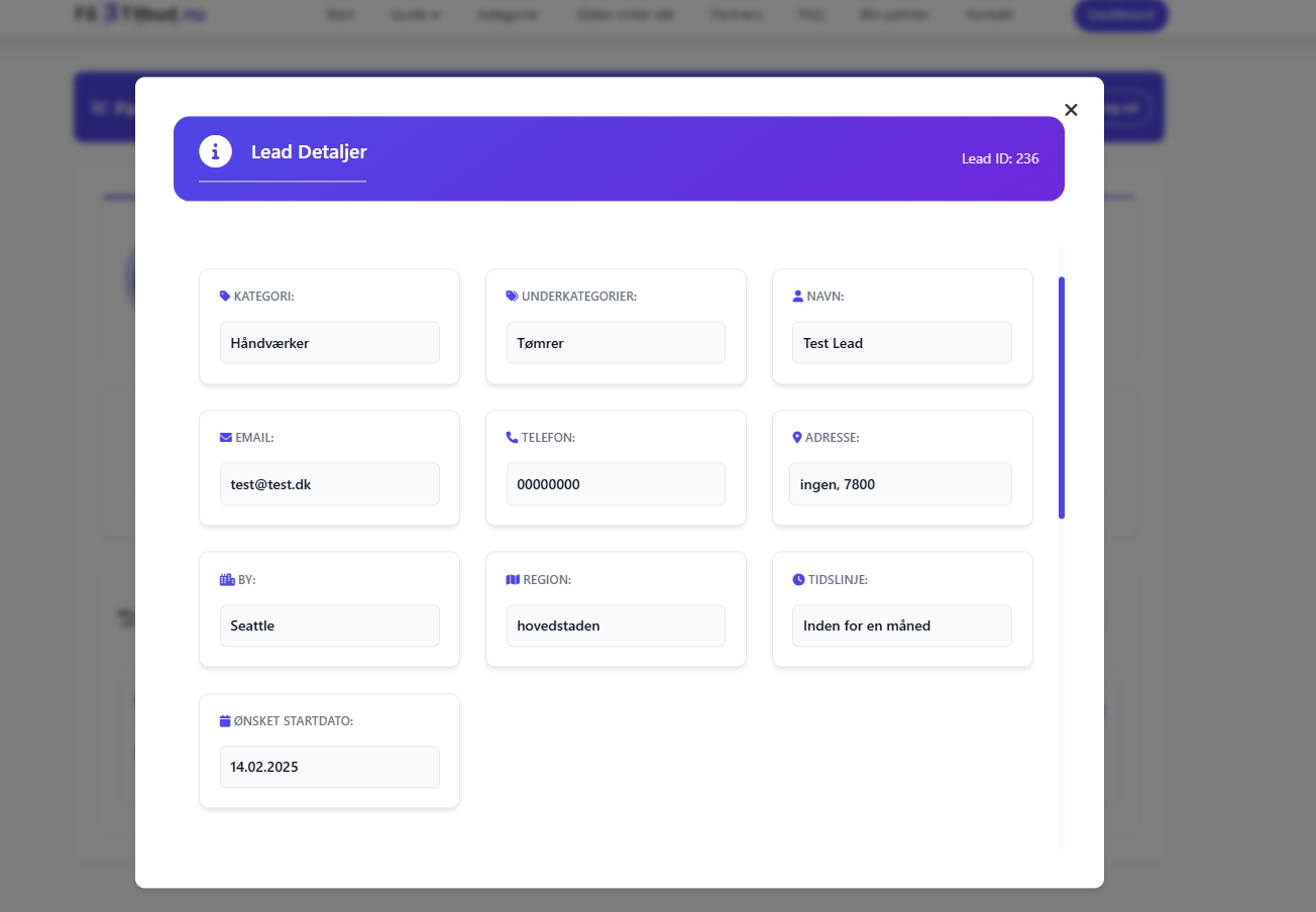 Derudover er AI Smart Oplæg (ASO) integreret direkte i partner-dashboardet. Funktionen bruger OpenAI til at skrive professionelle tilbud baseret på leadets beskrivelse, kategori og lokation – med ét klik. Det sparer tid og øger konverteringen markant.