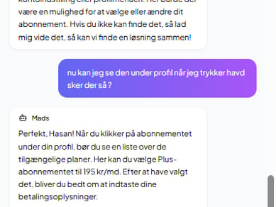 • Chatboten kender alle abonnementsdetaljer og hjælper brugeren hurtigt videre