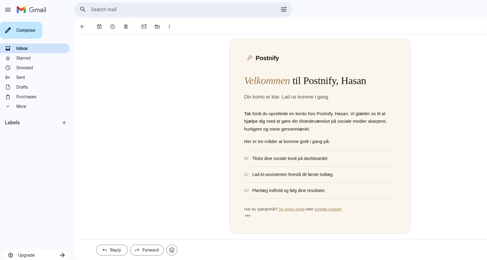 Ved køb af Postnify får du 30 dages gratis support og oplæring, så du nemt kan overtage og drive platformen videre. Jeg hjælper dig i gang med: