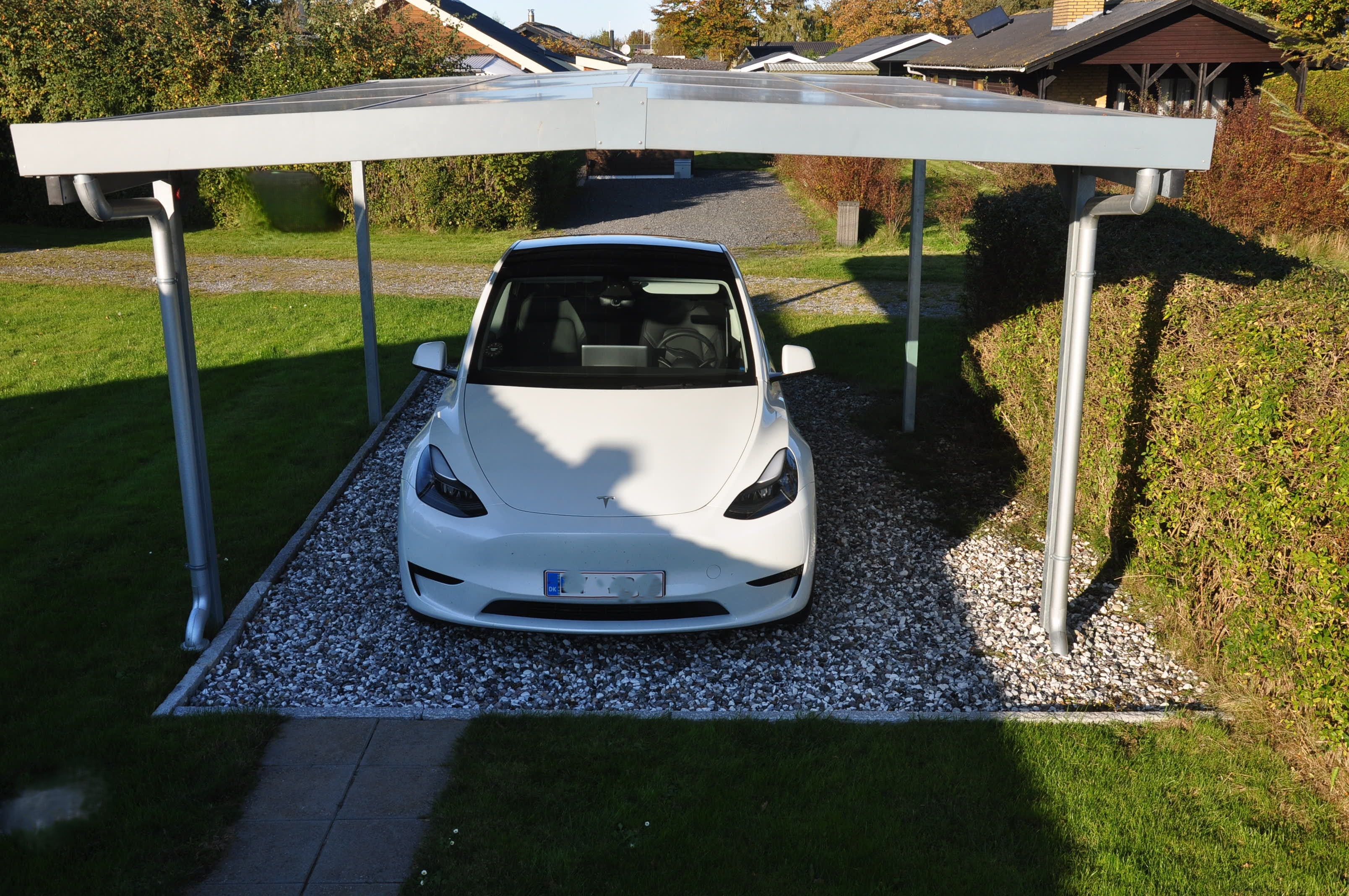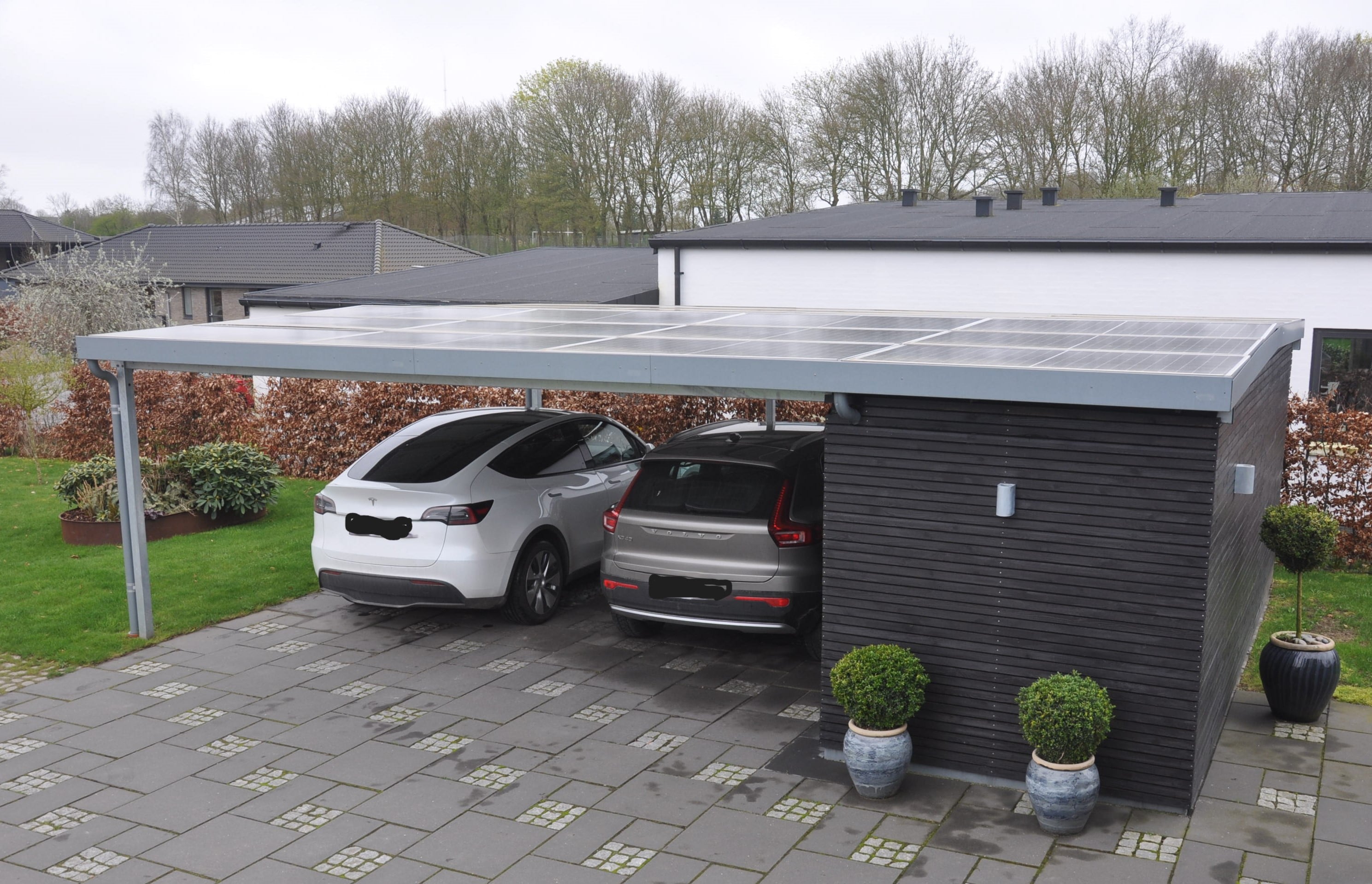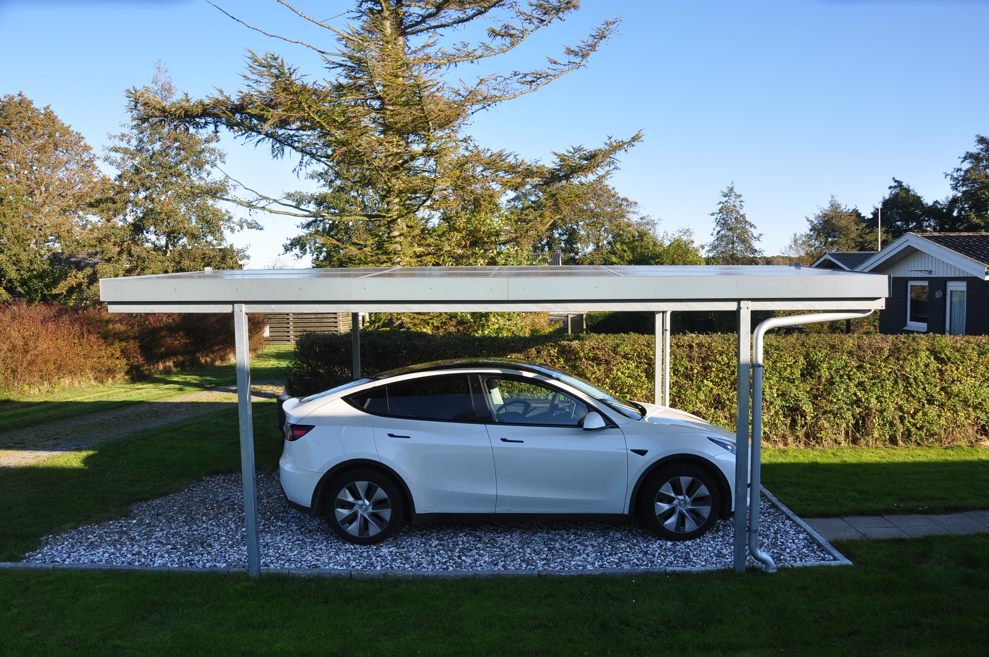 SolcelleCarporte leveres til private husstande med plads til 1-2 biler og tilbygning af opbevaringsrum. Der tilbydes også overbygning af store parkeringsarealer for virksomheder og offentlige institutioner. Her tilbydes anlæg fra 3 til flere hundrede P-pladser. Fælles for alle løsninger er, at taget består af effektive solcellepaneler. Taget er helt tæt og tagrender er ikke synlige. Tagfladen har kun svag hældning så den ikke kan ses fra jorden og solindstrålingen er jævn over dagen. Med vores SolcelleCarporte kan der opnås markante besparelser i CO2-udledningen og samtidig ganske fornuftige tilbagebetalingstider. Der er således tale om anlæg, der betaler sig selv og producerer grøn strøm til ejerne mange år frem i tiden. Sidegevinsten er at biler kan parkeres i tørvejr og skygge. Serierne er skalerbare, fleksible og tilpasningsparate, da der anvendes standardkomponenter.