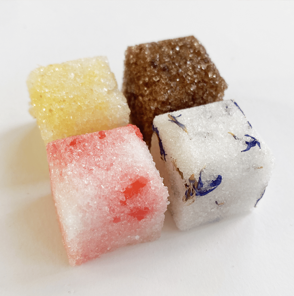 En sugar cube er en håndlavet sukkerknald, der er infused med kraftig aromaer og spiselig pynt, inspireret fra cocktailverdenen for at give en helt unik smagssammensætning. Sukkerknalderne kan bruges, når der skal laves lækre drinks i sommerhuset, altanen eller bare ved køkkenbordet en tirsdag aften.