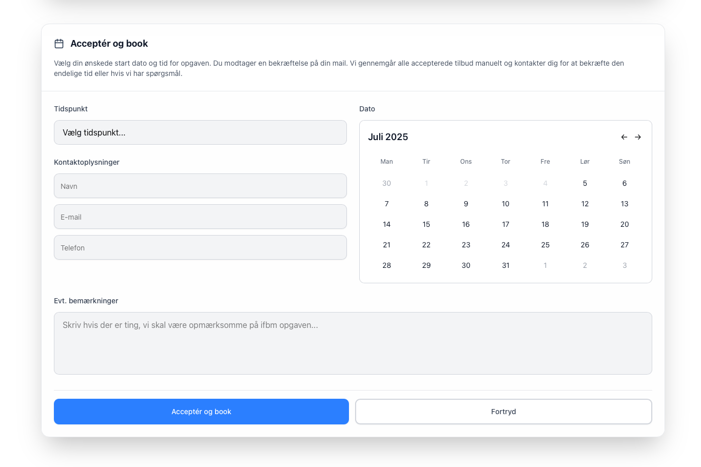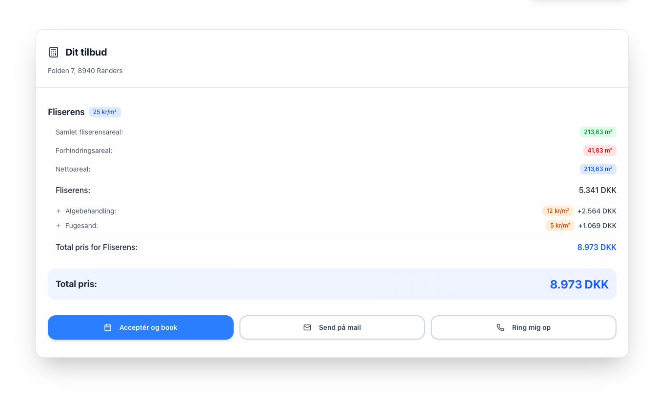 En anden udfordring er, at når kunden har beslutter sig for at de fx vil have renset deres fliser og sidder og leder efter en som kan klare opgaven, typisk kl. 20 om aftenen i sofaen, så bliver de mødt af en gammel kontaktformular og skal vente 24-48 timer i håb om at de modtager et tilbud - ofte skal virksomheden her først ud og måle op hos kunden.