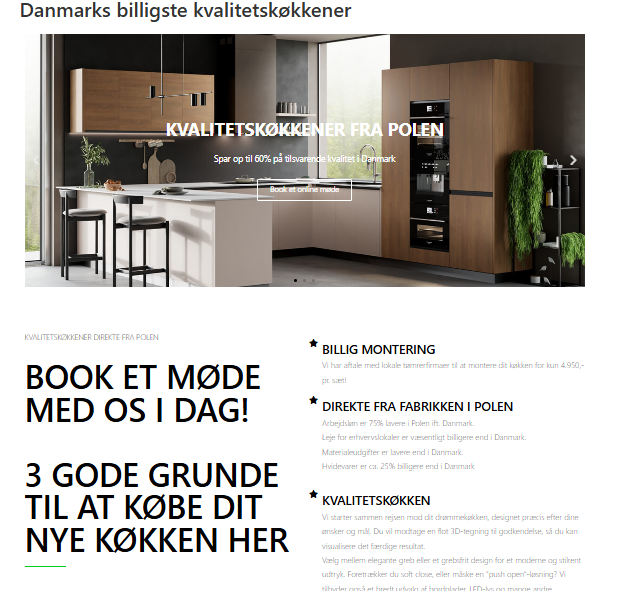 Vi har et samarbejde med et professionelt, veletableret (og billigt) polsk køkken producent, kontakt os for priseksempler på køkkener