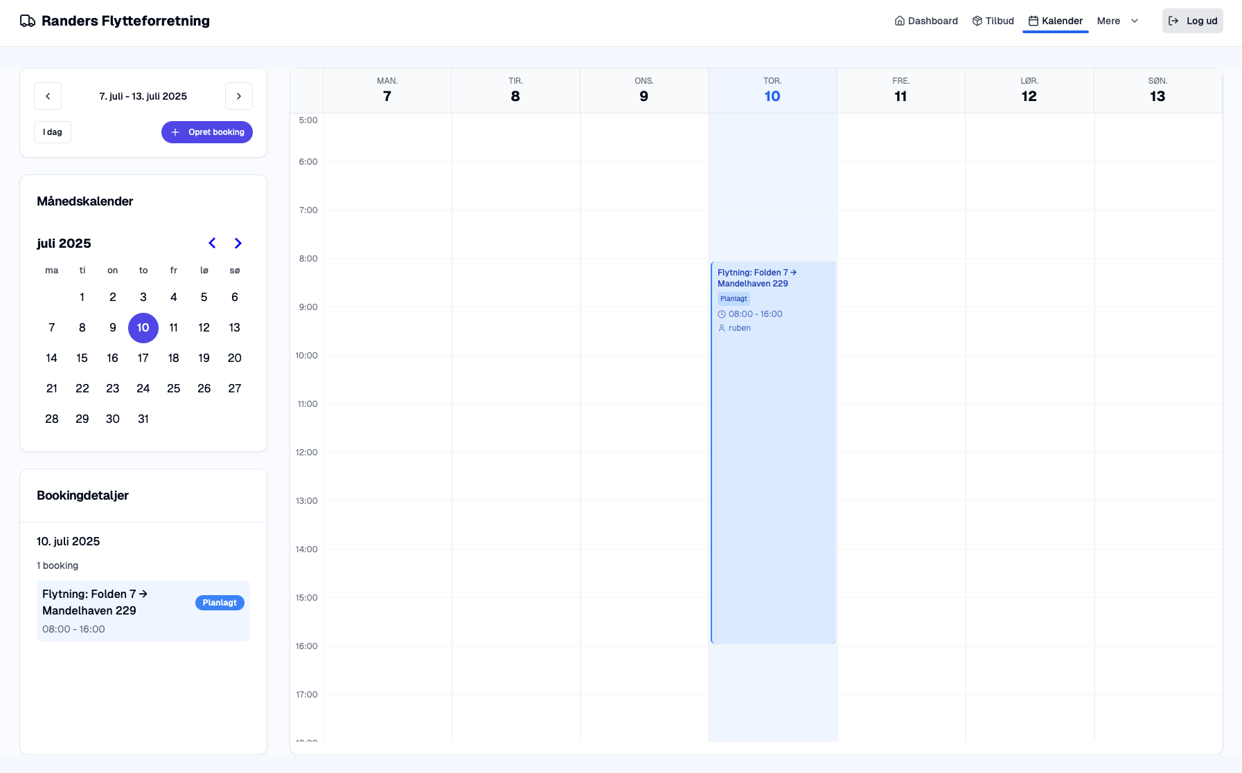 Der er indbygget medarbejder- og flådehåndtering, så systemer automatisk finder næste ledige tid, hvor der er en passende flyttebil til rådighed OG en chauffør med det tilladte kørekort.