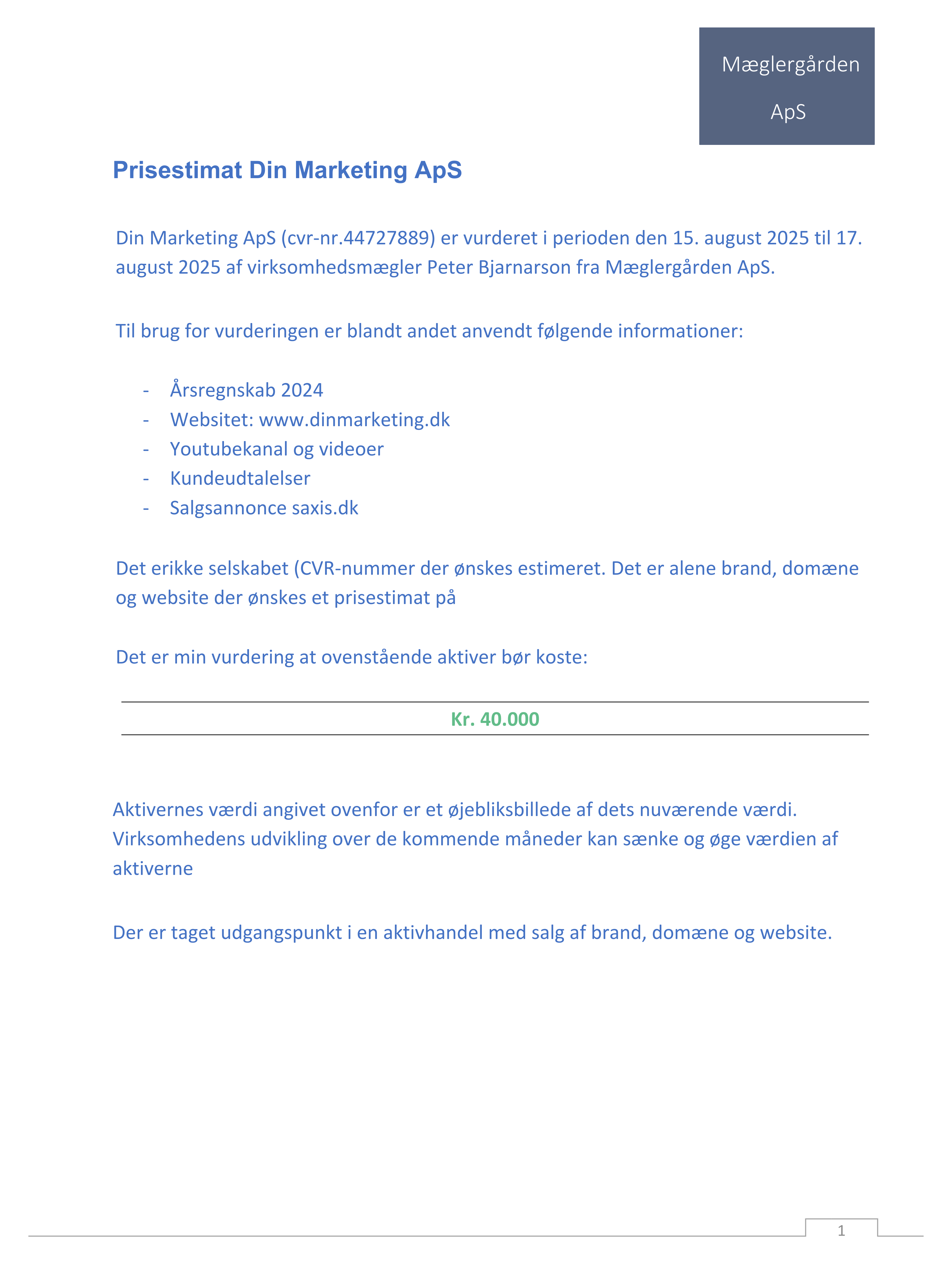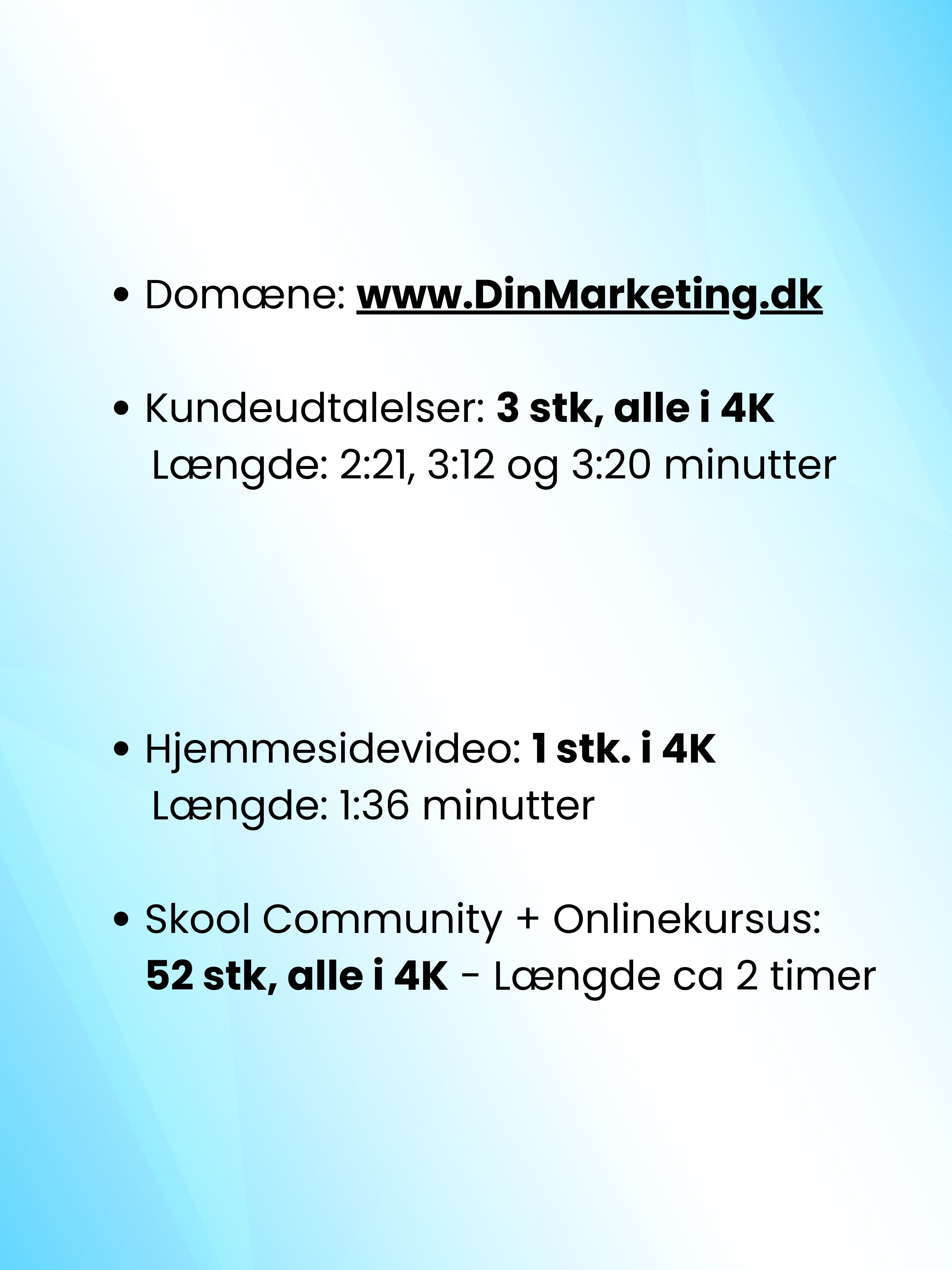 Færdigbygget marketingbureau til salg – godt domæne og hjemmeside samt fantastiske videotestimonials www.DinMarketing.dk - Værdiansat af virksomhedsmægler