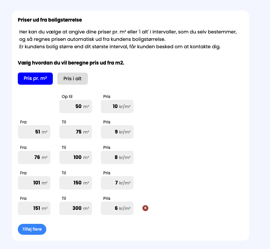 Der kan fx laves 2 pris modeller: