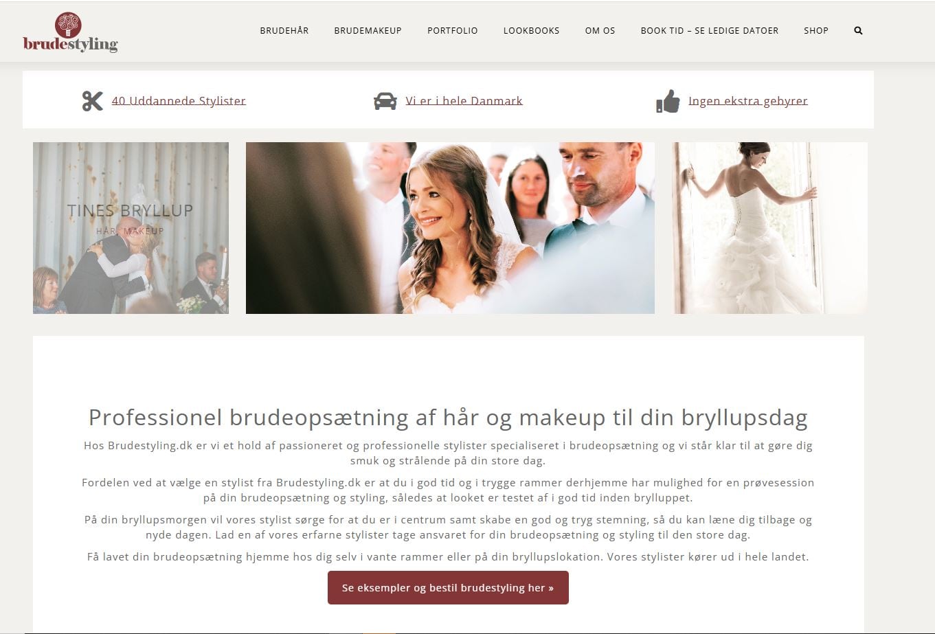 Da Brudestyling er en ´gammel´ virksomhed er sitet ret godt søgeoptimeret organisk og kunder finder os. Vores kundesegment er selv meget opsøgende og vil gerne planlægge deres eget bryllup super fint.