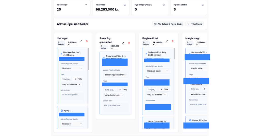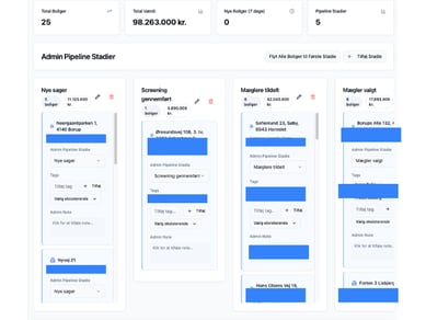 • Gennemgang af hele platformens backend, adminfunktioner og mæglerkartotek