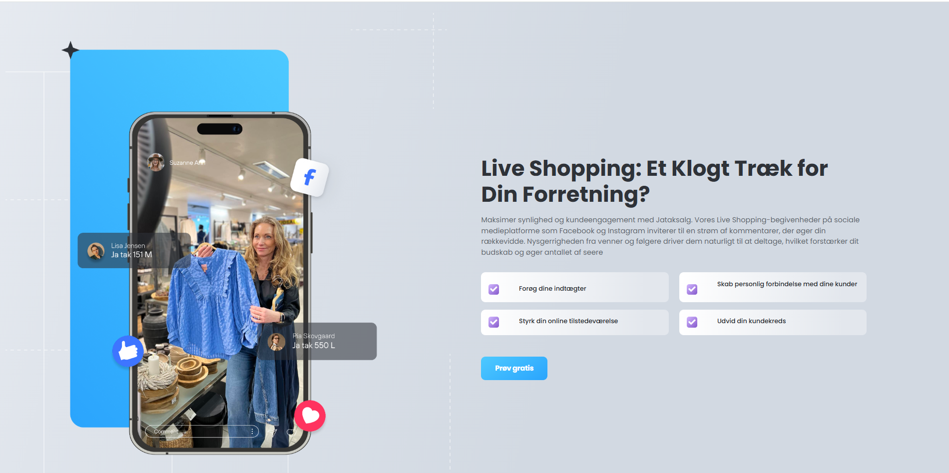 Kommentarsalg virker allerede – live shopping kan tilføjes for lav pris