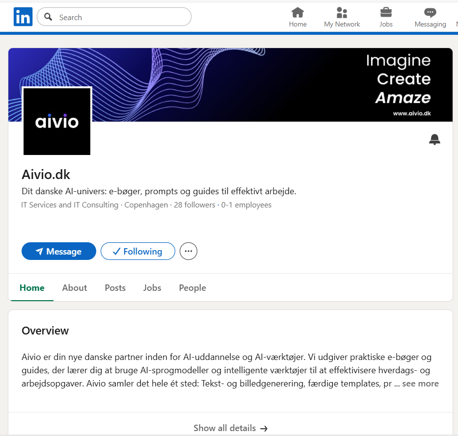 - LinkedIn-side med aktiv tilstedeværelse, ugentlige opslag og eksisterende følgerskare, som kan anvendes direkte i markedsføring og leadgenerering