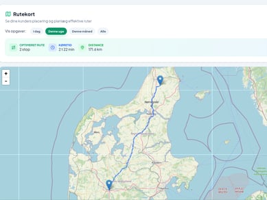 ruteplanlægning på kort og medarbejderstyring. Firmaer kan vedhæfte PDF-tilbud med vilkår,