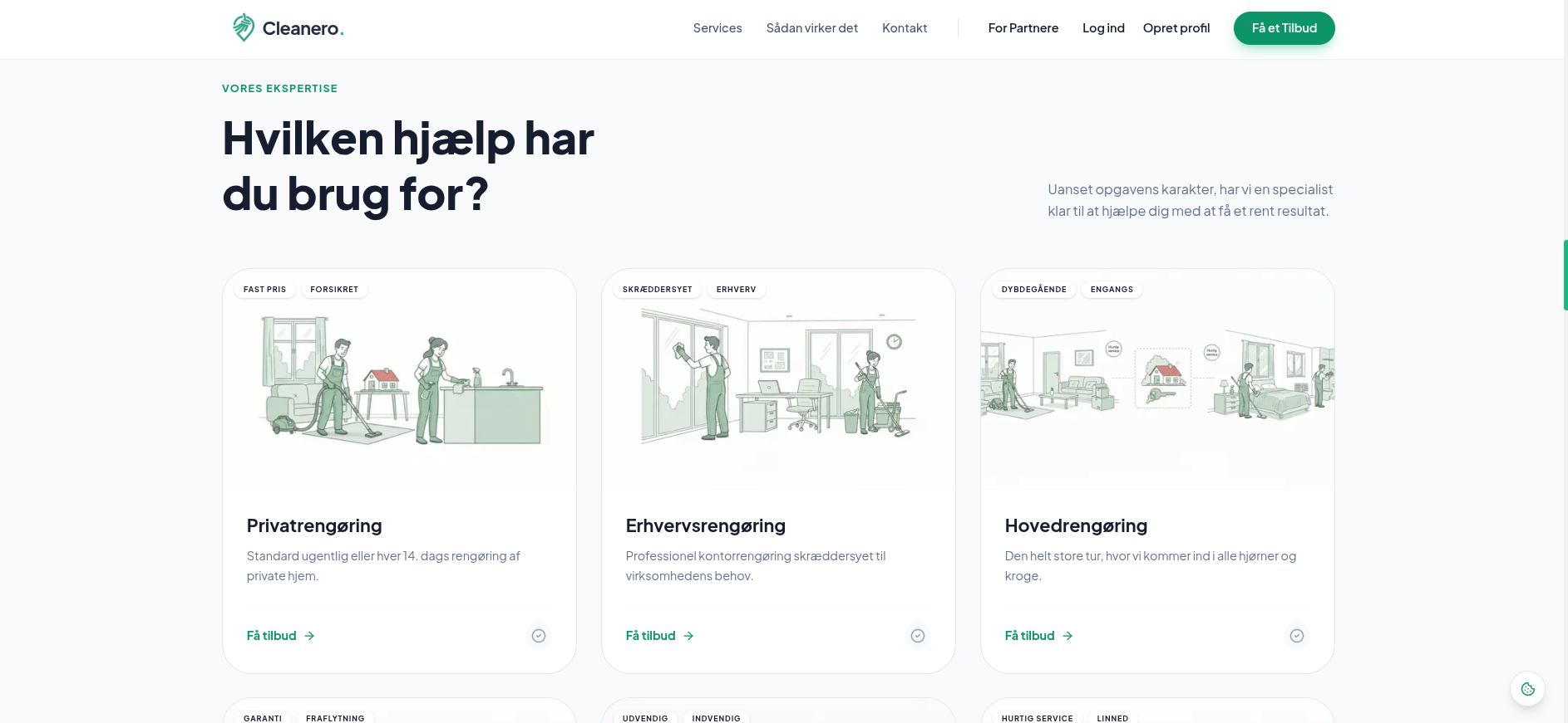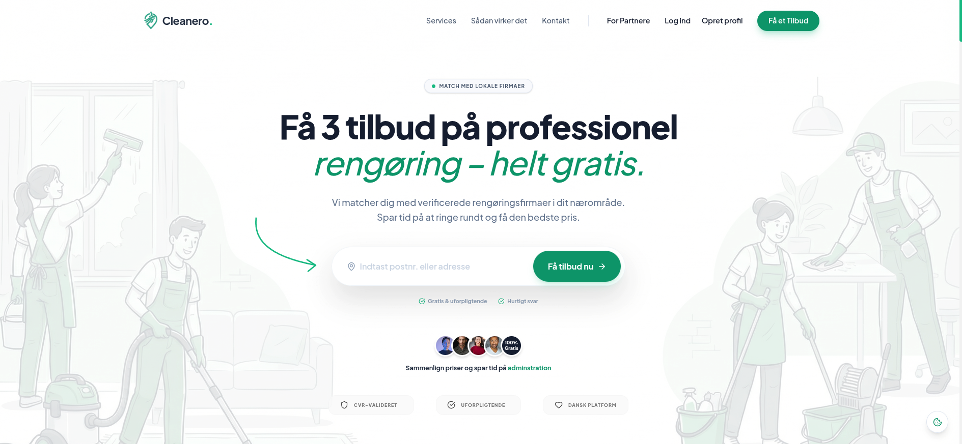 • Færdig lead-platform der forbinder kunder med rengøringsfirmaer i hele Danmark