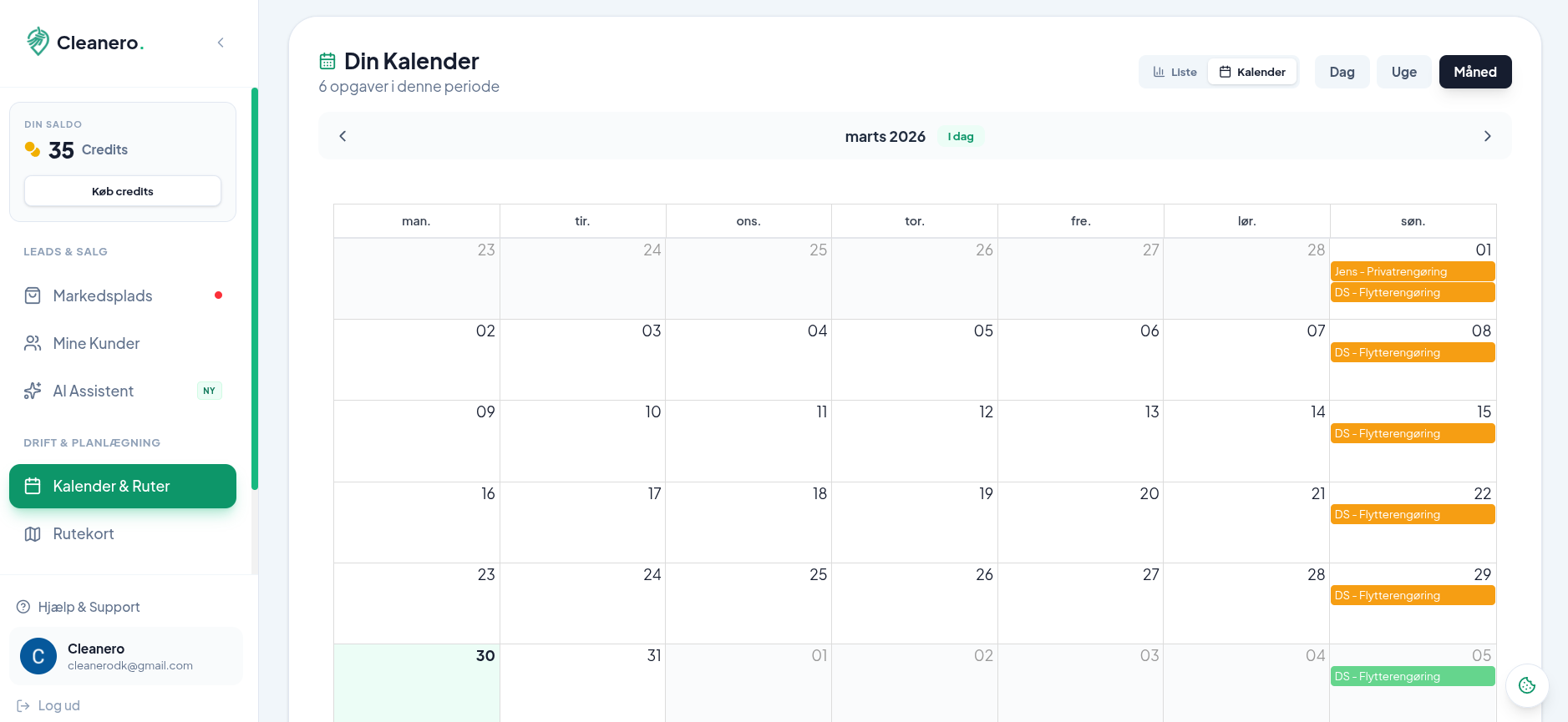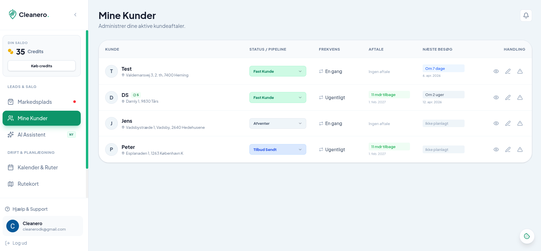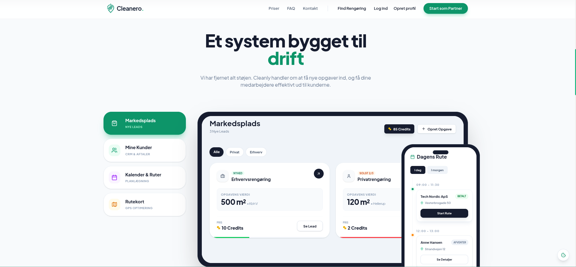 Cleanero.dk - SaaS Lead-platform med AI, CRM & Credit-system